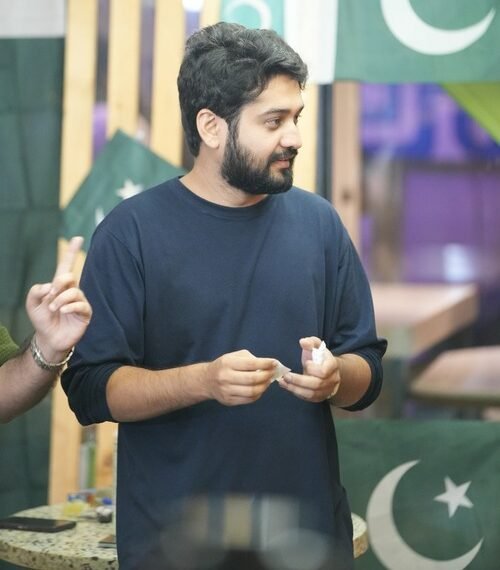 Ramil Aftab has been rocking the stage since 2018, winning hearts with his performances in plays like Zoo story, Marhoom ki Yaad mein (Pitras Bukhari) The Proposal, Antigone, and many more. Not one to stay confined to theatre, he has also stepped into television with two shows and a short film under his belt. When he’s not performing serious roles, you’ll probably find him cracking jokes—Ramil has been doing stand-up comedy in the twin cities since 2015, bringing laughter to every stage he steps on. Off-stage, he wears a different hat as an energy consultant (yes, he’s a geophysicist by degree!), proving that he can balance equations just as well as punchlines.